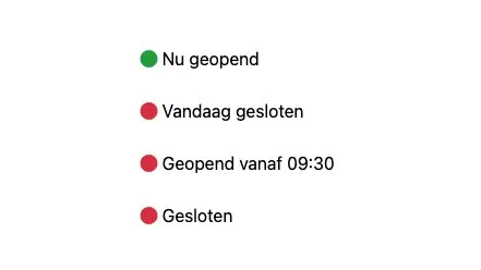 De widget is dynamisch en geeft de actuele status van uw bedrijf weer. Dit voorkomt dat een klant teleurgesteld voor een dichte deur staat.